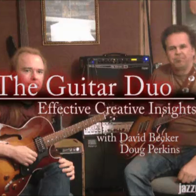 David Becker and Doug Perkins talk about both generalities and finer points of playing in a guitar duo. They show numerous ways to create musical interplay with a number of versions of a Bb blues and "Stella By Starlight".