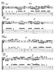 I particularly like how he suggests the Ab7 flat five sub with the last two notes in bar 18, and the  E melodic minor E-maj9 arpeggio over the C#7b5 in measure 29, it really grabs your ear and shakes it for attention when he hits that. Overall this solo is a great example of “Sco’s lyricalness, taste, and always interesting rhythmic sense – check out where he puts things in the measure and how he will wait and play things a sixteenth note later than someone might expect to make it all the more hip. I didn’t differentiate between the hammer on and pull-off and bends in my slur markings, but your ears will tell you what those are. If you don’t have “Uberjam Deaux” yet and you like funky jazz with a lot of quirk to it, you need to get it. And if you STILL don’t have the original “Uberjam” yet, you are missing out on what I consider to be the modern “Kind Of Blue”, that started a new form of jazz that the public could really “get”.