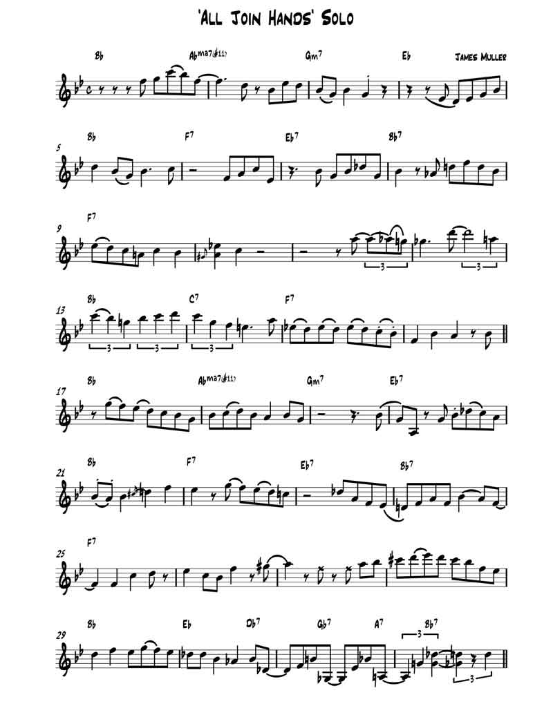 The audio track fades in to hear the second repeat of the head and then into the solo.