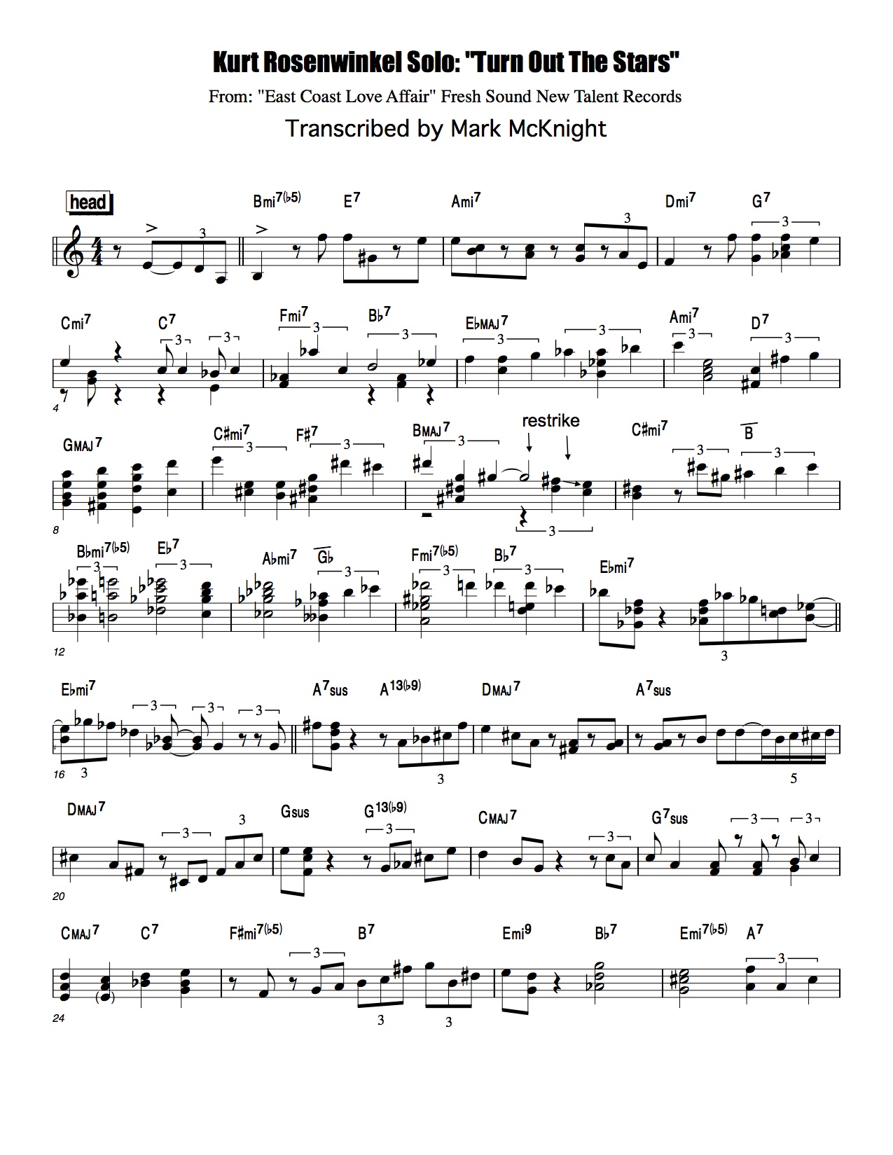 This transcription was donated by Mark McKnight. Mark is a wonderful jazz guitarist from Ireland who is quickly gaining popularity and has been hailed as “the future of Irish Jazz Guitar”. Check out his website by clicking here.